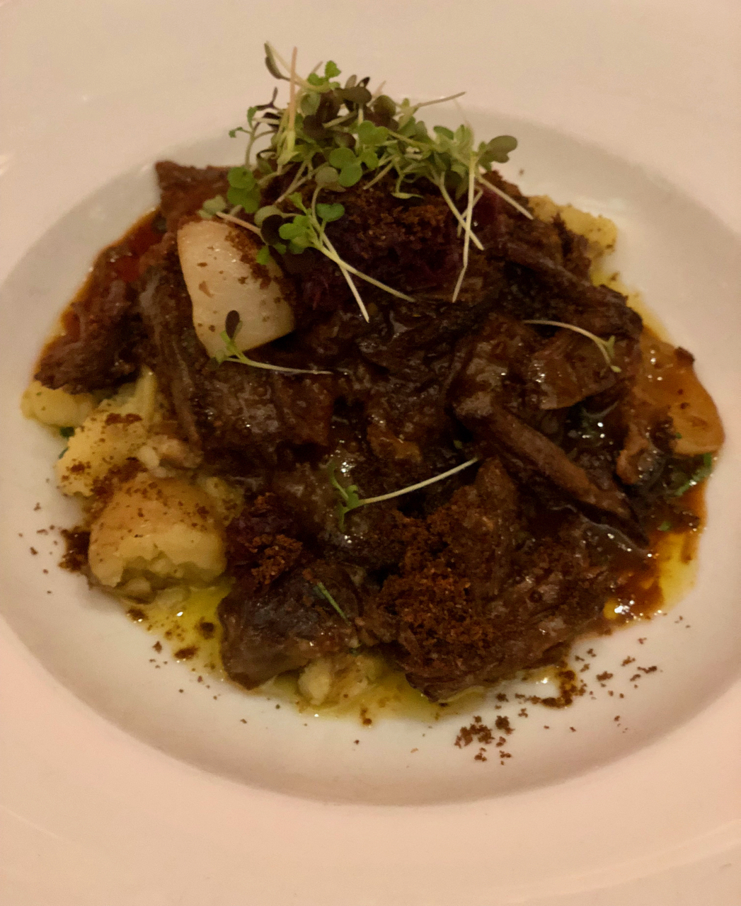 - Beef ragout, fingerlings, cabbage jam, pumpernickel crumb