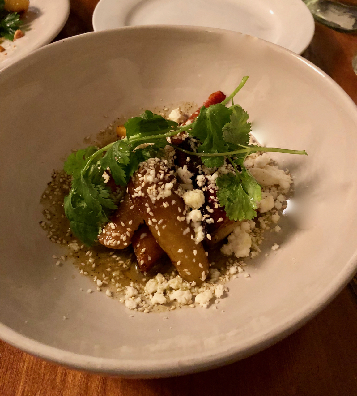 - Roasted Carrots, adobo butter, queso fresco, benne seed, cilantro