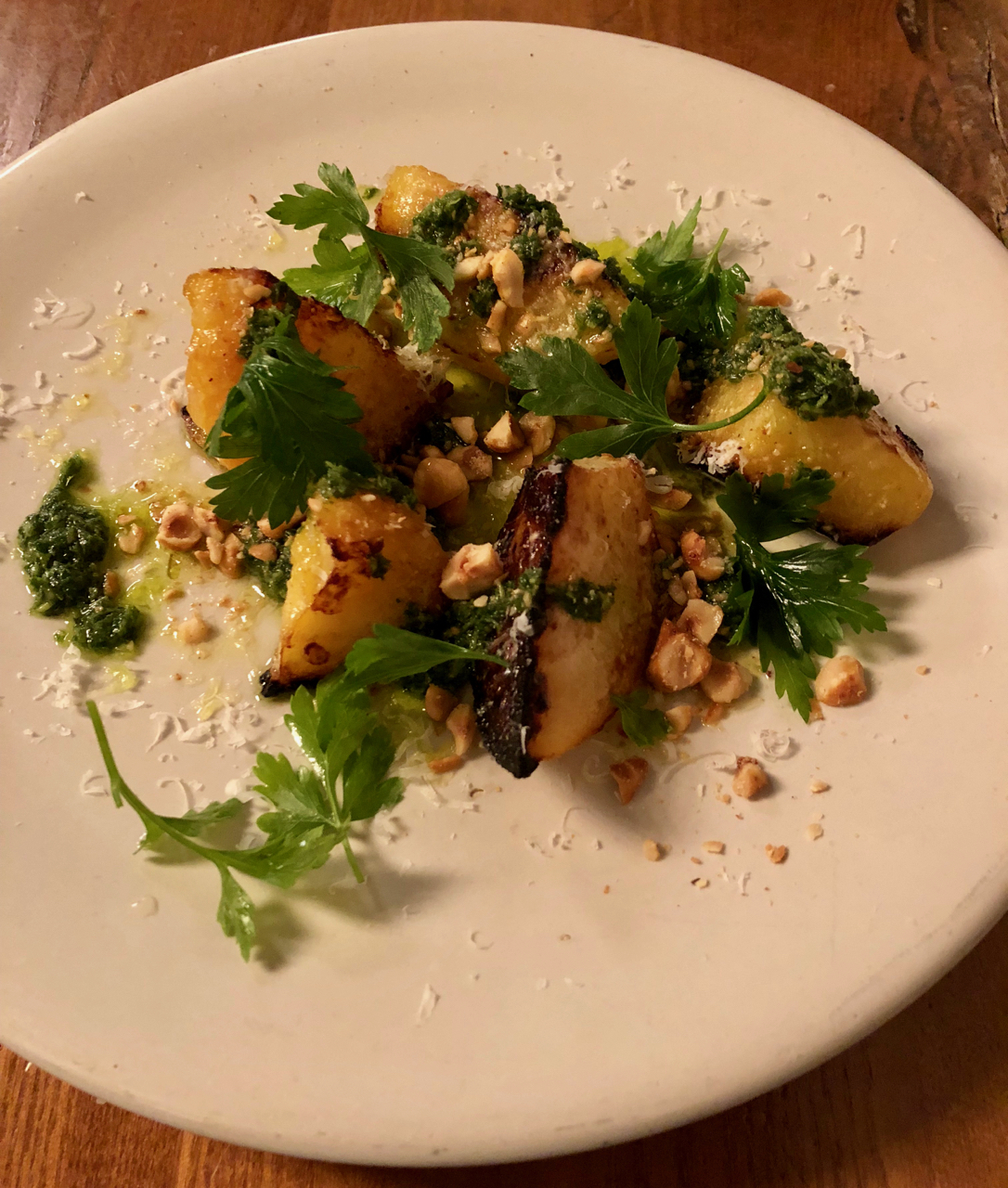 - Golden beets, hazelnuts, salsa verde, parsley, lemon, parmesan